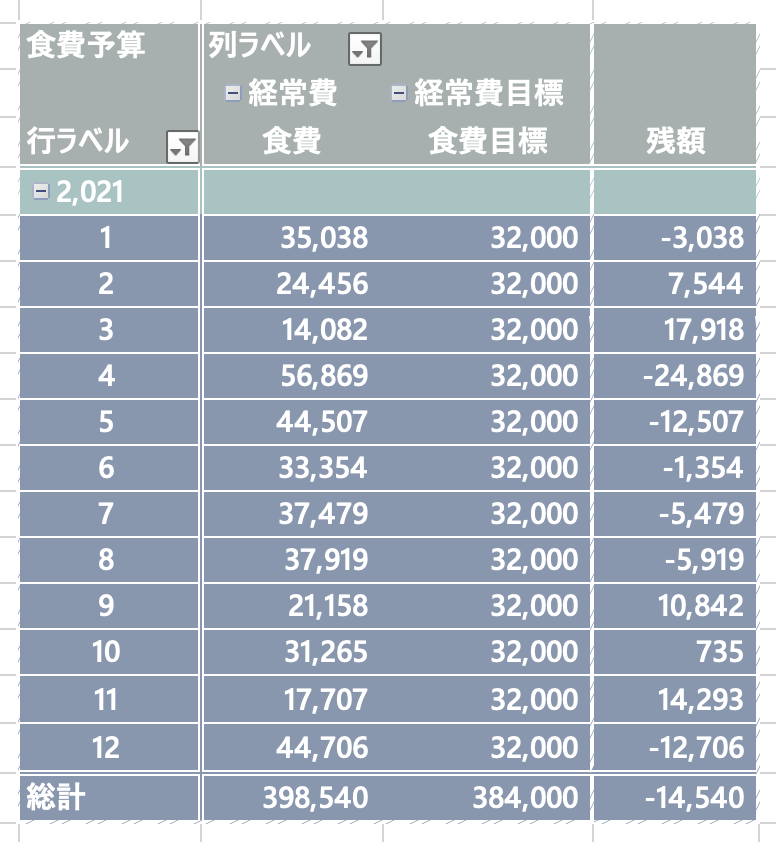 このピポットテーブル機能がかもしかの家計簿の肝になります。