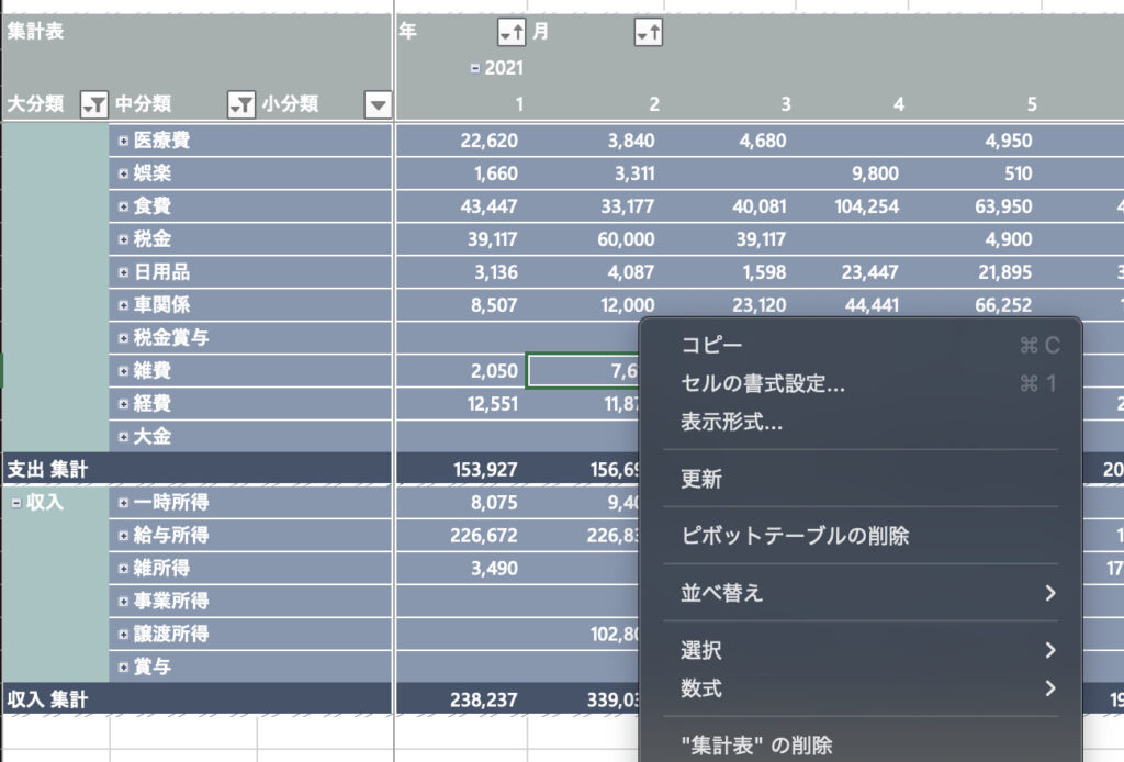 かもしかの家計簿のテンプレートは、ピポットテーブル機能を使えば、自作することも可能です