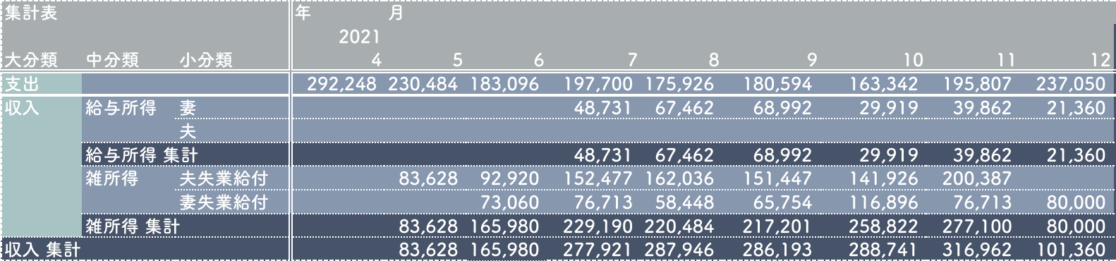 夫婦ともに失業手当を満額でもらい始めてからは、黒字になりました