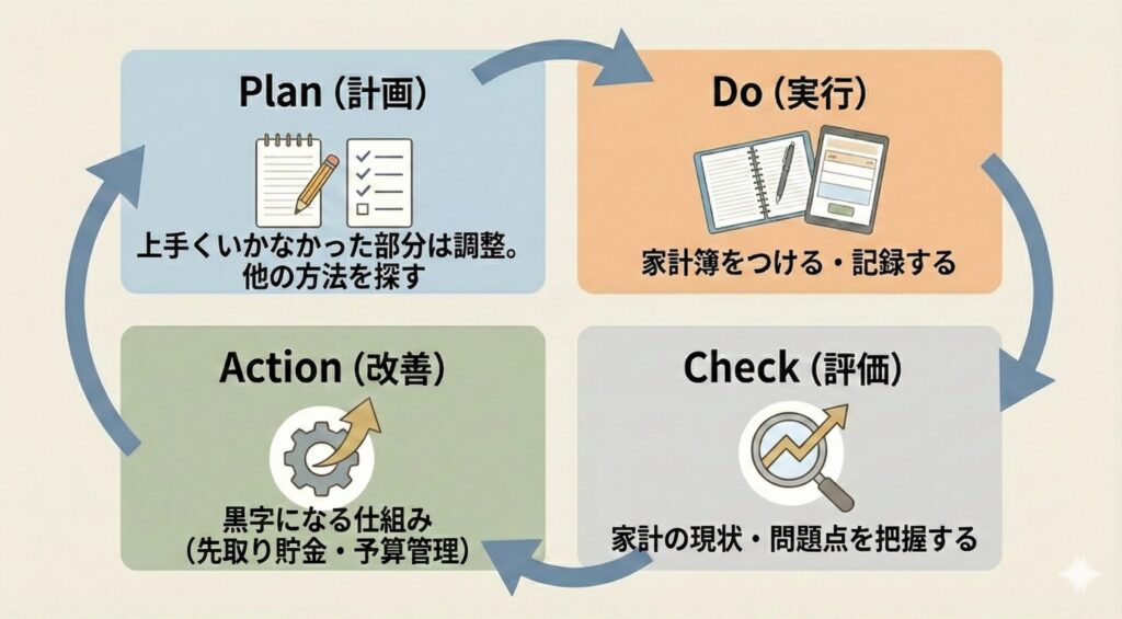 Action(改善)に失敗したとしても、DoやCheckの家計簿までやめてしまうのはとてももったいないです